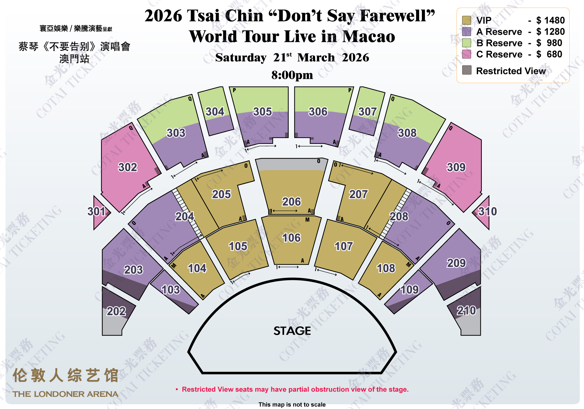 8 tickets per transaction per person. Transactions exceeding the applicable ticket limit may be cancelled without notice by Cotai Ticketing at its discretion. This includes duplicate transactions having the same name, billing address or credit card.